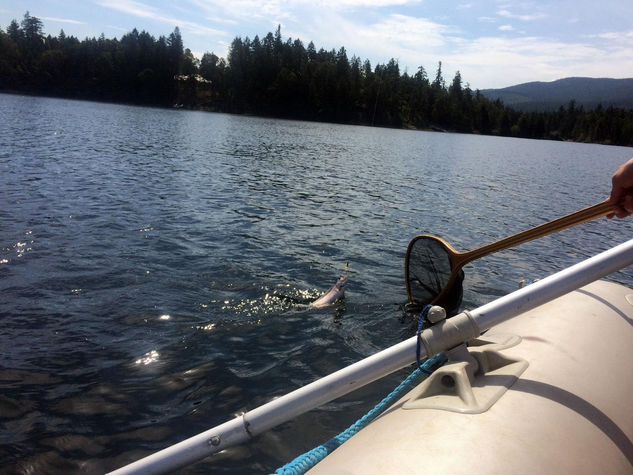 We met and talked to several others out on the water fishing from small boats. Most of them were having about as much luck as we were (which was not much at all). Our guys put out their lines for awhile, but Graham (the birthday boy) was the only one that managed to catch a 10” rainbow trout. We did see a very large bass near the boat launch though. He was probably laughing at us all.