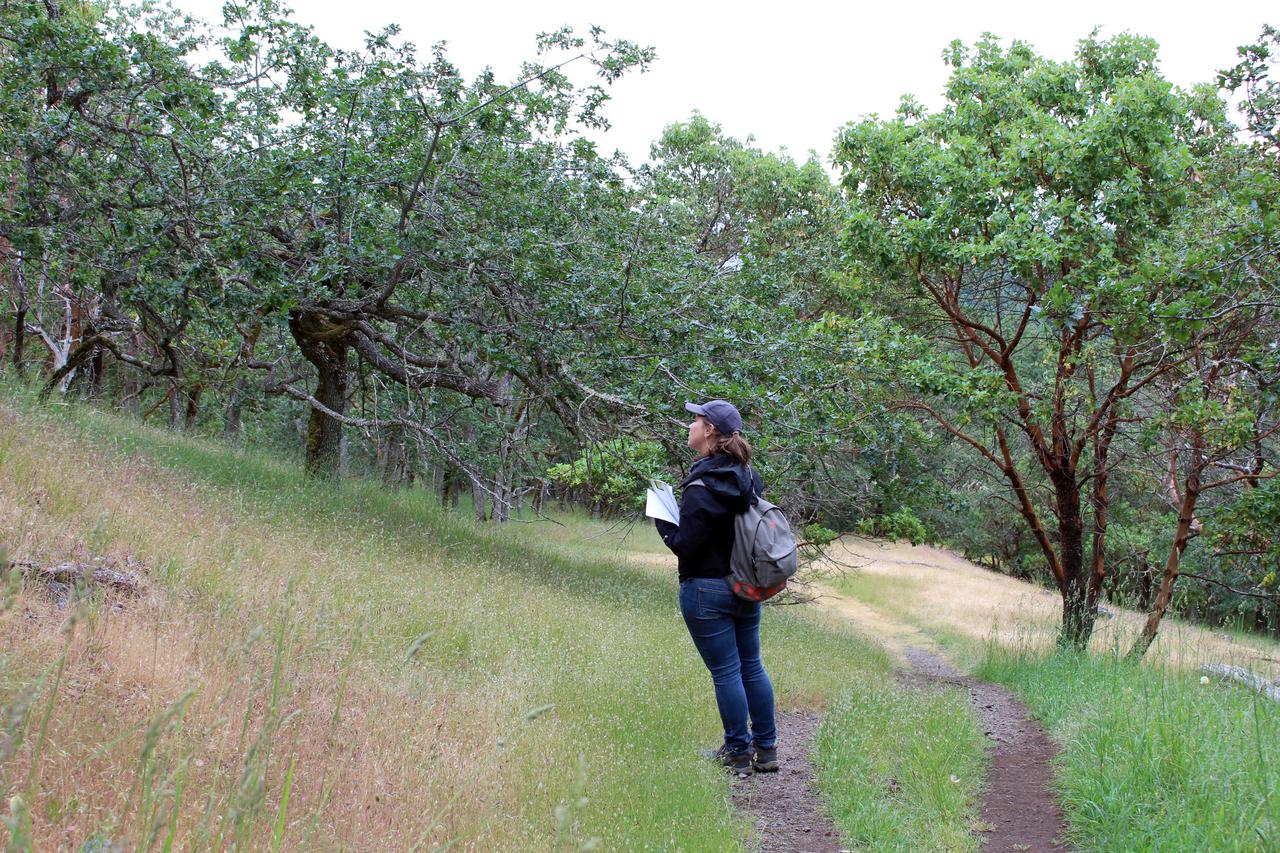 On Tuesday June 5th, MABRRI’s Assistant Research and Community Engagement Coordinator, Larissa Thelin, and I, Roxanne Croxall, a MABRRI Research Assistant, visited the first of many Garry Oak Ecosystem (GOE) field sites identified by our predictive mapping. This first field visit on Tuesday took place at Notch Hill in Nanoose Bay. With the help of experts, Dr. Caroline Jossefson (VIU Biology), and naturalist Kent Anders, the MABRRI team was able to begin ground-truthing our remotely sensed predictive mapping. We took with us in the field our predictive maps of Notch Hill with some highlighted field sites and began by first identifying Garry oaks and other indicative GOE flora species. Then once a GOE was identified, we began delineating, with a Garmin GPS, the extent of the individual ecosystems by walking around its perimeter. Caroline and Kent were extremely knowledgeable and able to help us identify numerous flora species at this field site, including many native and invasive species. Information such as the degree of introduced species invasion and surrounding land use were recorded and will later help in identifying ecosystem vulnerability. Information specific to the ecosystem, including but not limited to: site openness, apparent soil depth, dominant tree species, and proximity to the ocean, were also recorded in order to better predict the type of GOE present (e.g. meadow, coastal bluff, woodland, etc.). Throughout the course of the summer, we will try to visit as many of our predictively mapped field sites with the hopes of ground-truthing them all. This field work will help generate a more refined map of GOE distribution and allow us to gain a better understanding of individual GOE vulnerability within the MABR for future conservation purposes.